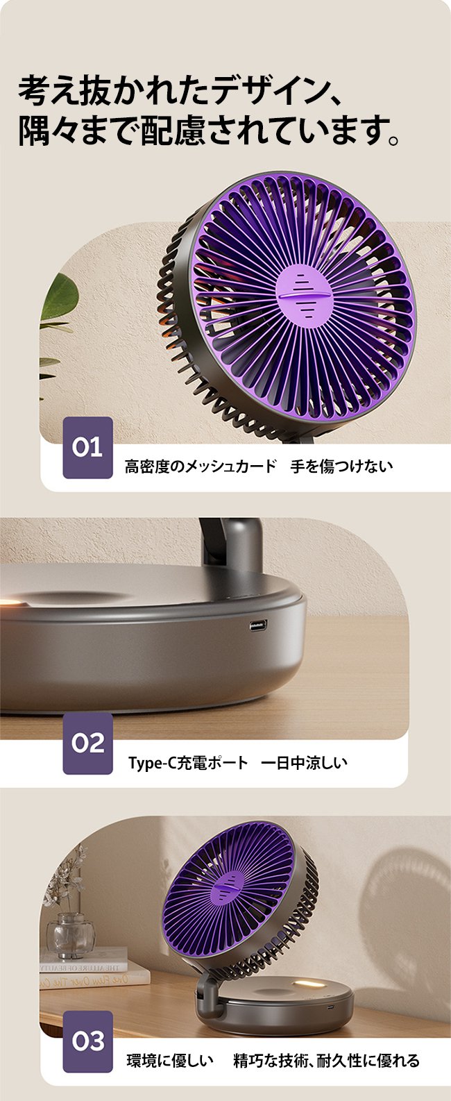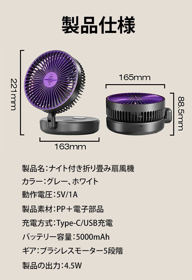 ナイト機能付き折りたたみ扇風機